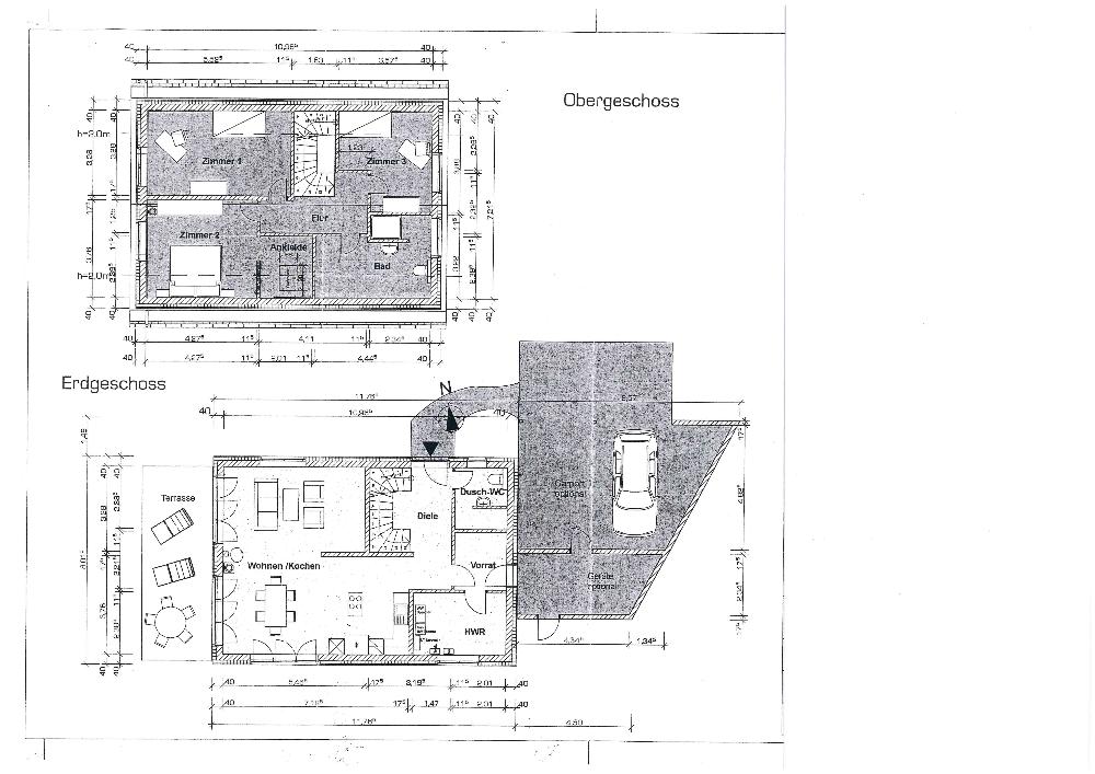 EG: Diele, Gäste-WC mit Dusche, Vorratsraum mit Durchgang zur Doppelgarage und zum Geräteraum, HWR, Wohn/-Esszimmer mit Zugang zur Terrasse
